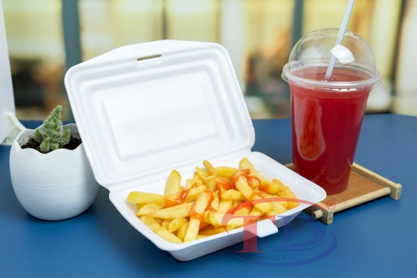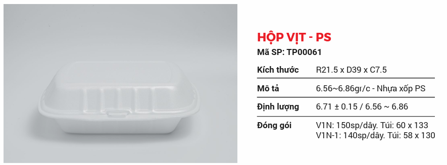 Tien Duc foam boxes are used to contain and preserve food at temperatures below 70 degrees Celsius; contains ready-made dishes such as: rice, sticky rice, roasted chicken, roasted duck, etc. The foam box is rectangular and has a securely fastened lid.