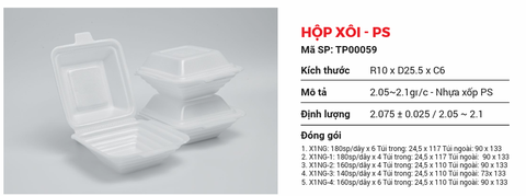 Tien Duc foam boxes are used to contain and preserve food at temperatures below 70 degrees Celsius; contains ready-made dishes such as: rice, sticky rice, roasted chicken, roasted duck, etc. The foam box is rectangular and has a securely fastened lid.