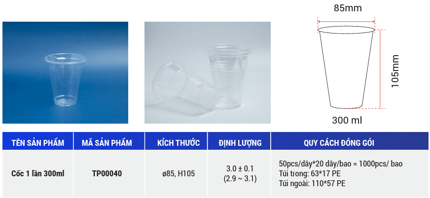 * Product name: Disposable plastic cup - 300ml