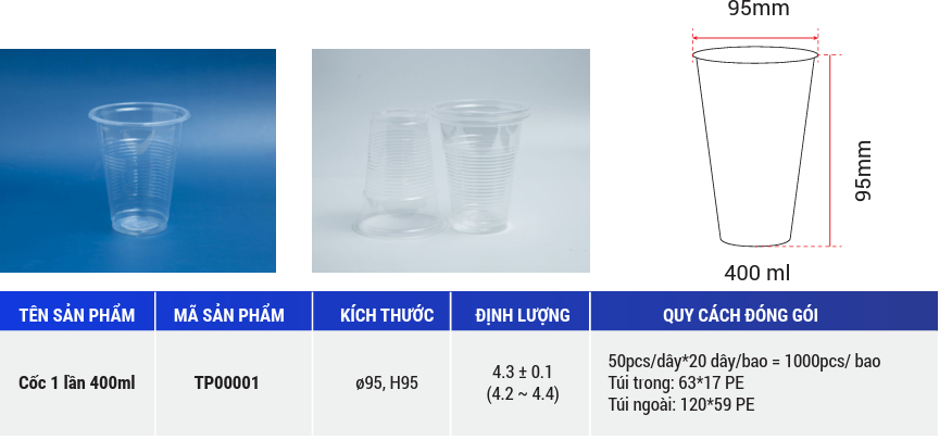 Disposable cups Tien Duc are made of plastic material that is safe for users' health. Using plastic food packaging helps preserve food from disease-causing bacteria. With waterproof and transparent features, you can see the food inside. Plastic material is recyclable and environmentally friendly.