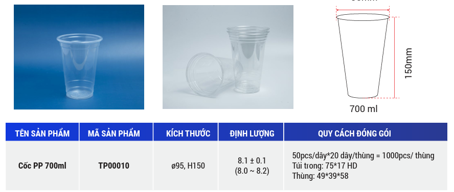 Milk tea cup PP Tien Duc are made of plastic material that is safe for users' health. Using plastic food packaging helps preserve food from disease-causing bacteria. With waterproof and transparent features, you can see the food inside. Plastic material is recyclable and environmentally friendly.